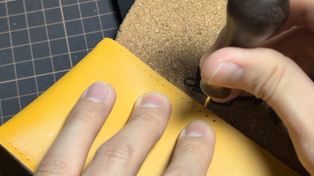 ガイド線を引いた箇所に、いよいよ縫い穴をあけていきます。